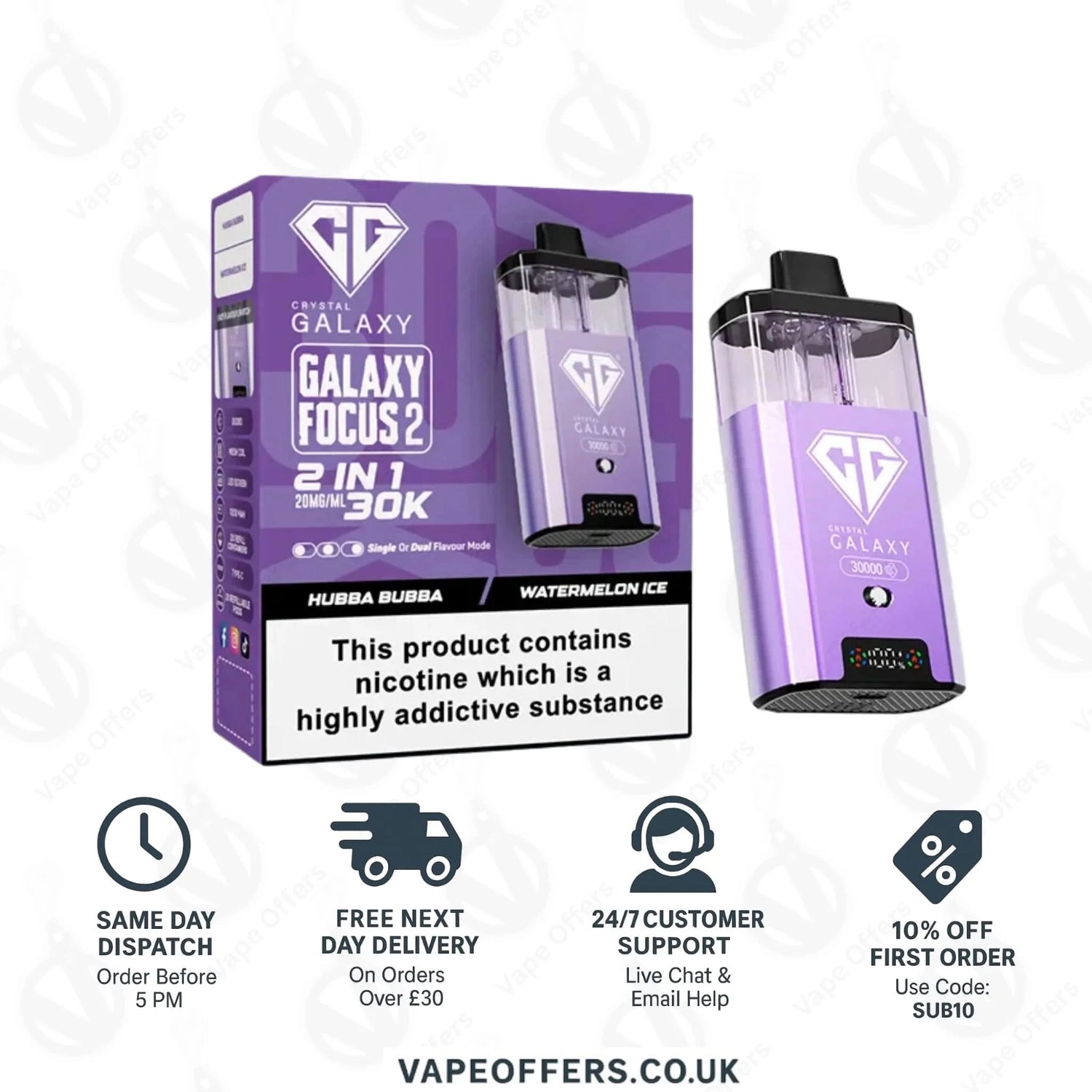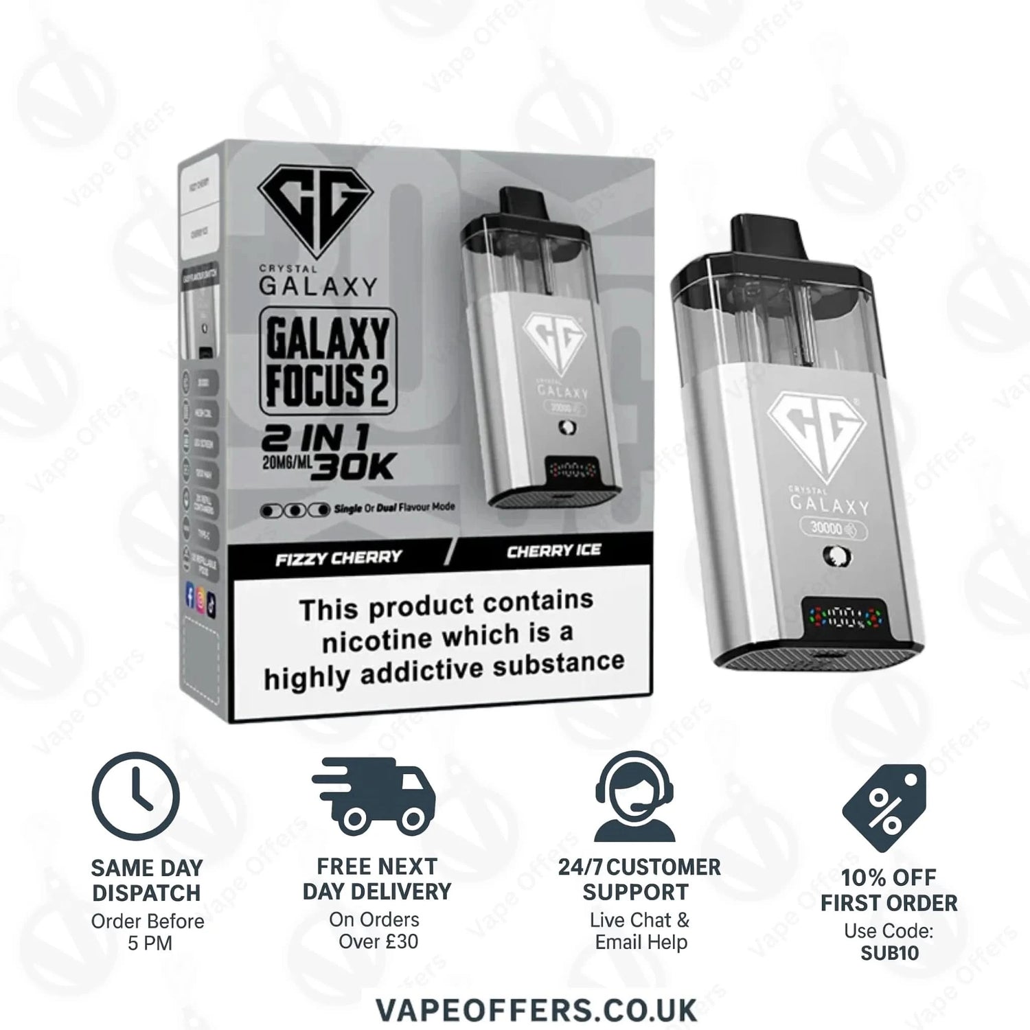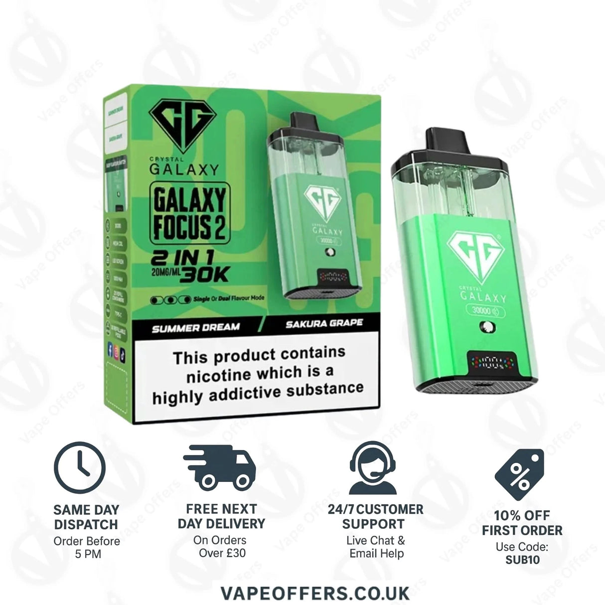 Fully TPD-compliant and backed by Vape Offers’ reliable service, the Galaxy Focus 2 is ideal for everyday use. Replacement Galaxy 30K pods are available, and if you're just getting started, our Vaping Guide will help you find your ideal style. Enjoy fast UK delivery, exclusive offers, and quality you can trust.