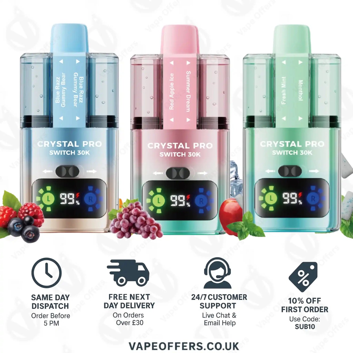 The Crystal Pro Switch 30K Vape Kit combines innovation, convenience, and quality, making it a top choice for vapers in the UK.