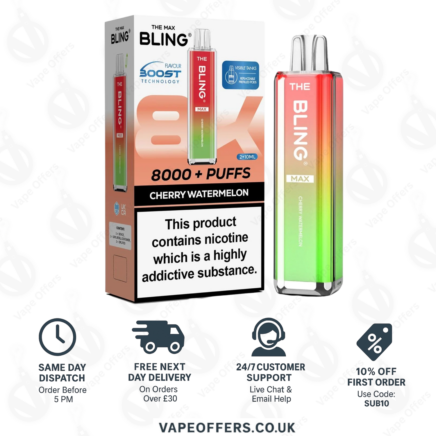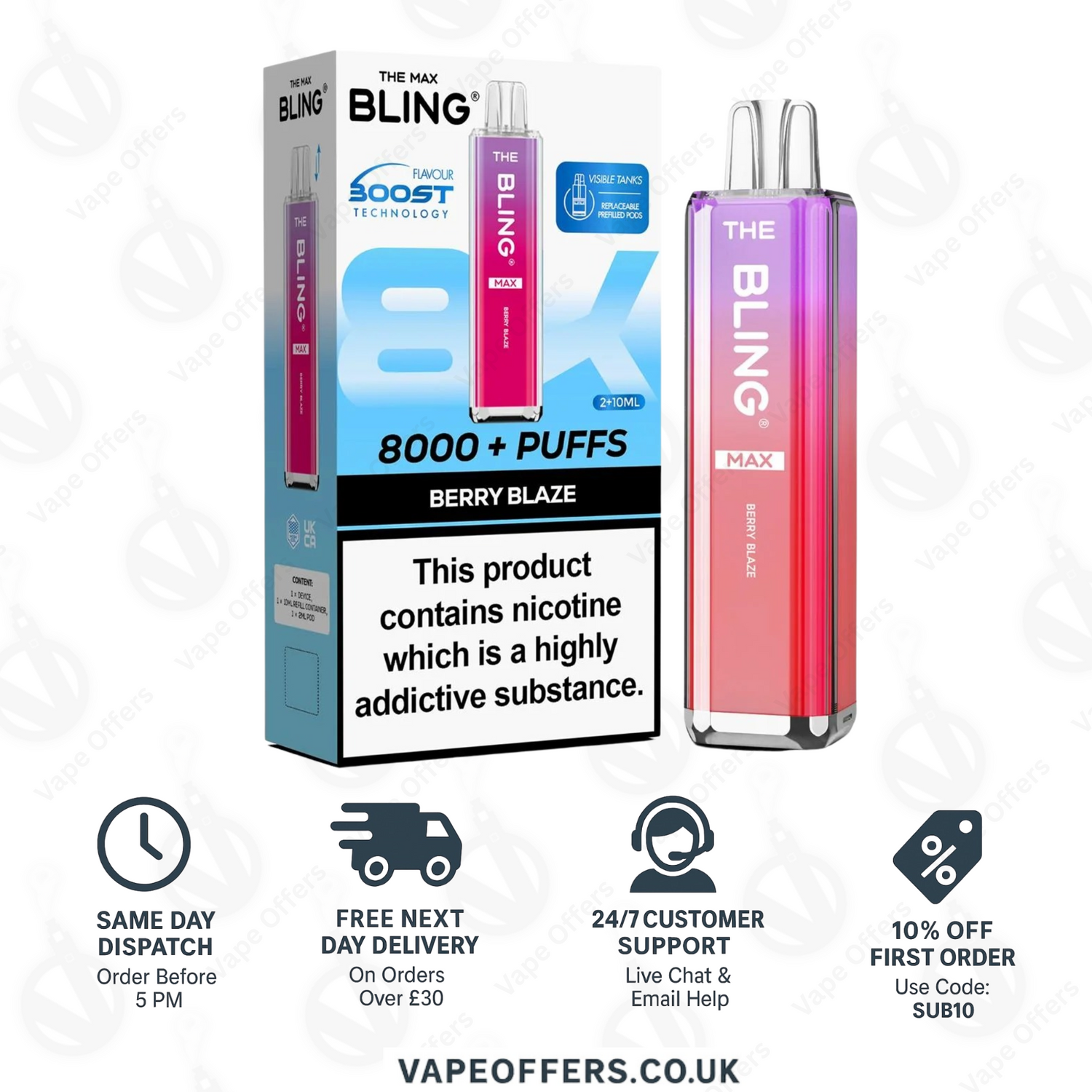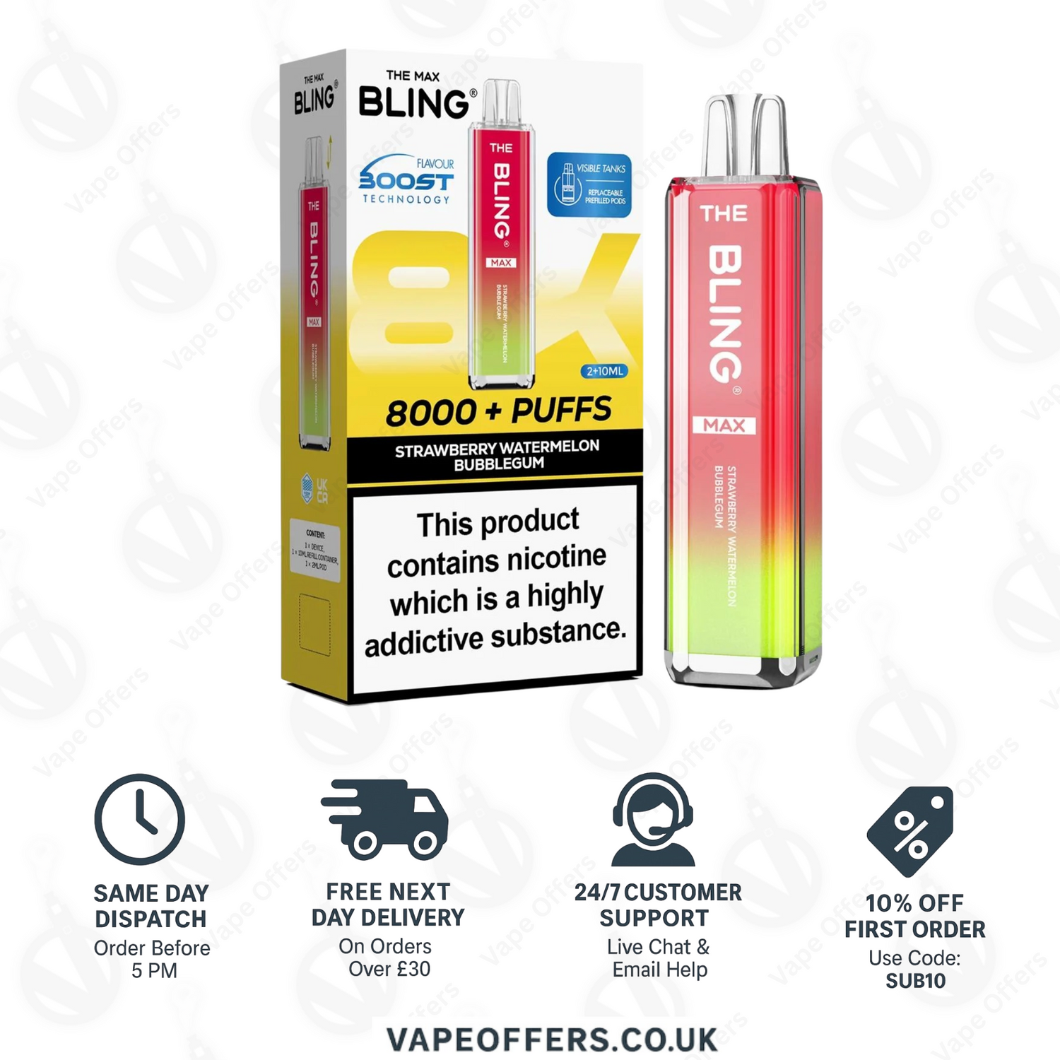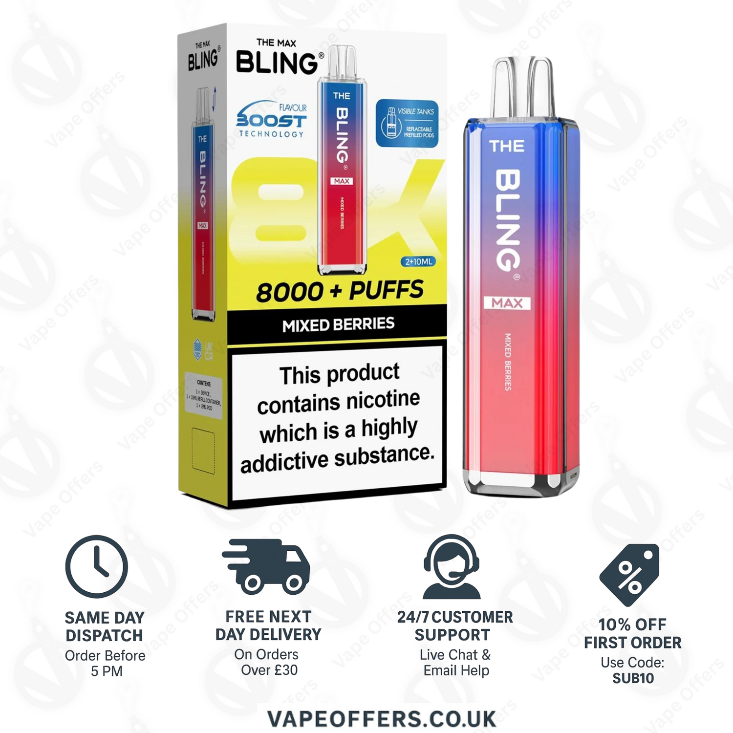 The Crystal Bling Max 8000 is the ultimate pick for vapers who want long-lasting performance and flashy style. It combines high capacity, rich flavour and convenience at an unbeatable price. Ready to add some sparkle to your vape? Buy the Crystal Bling Max 8000 now at Vape Offers UK for just £10.99 per kit, and experience premium vaping that truly stands out.