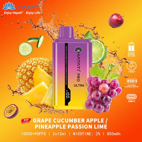Grape Cucumber Apple / Pineapple Passion Lime - Hayati Pro Ultra 15000 Puffs