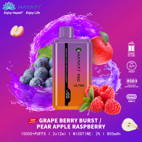 Grape Berry Burst / Pear Apple Raspberry - Hayati Pro Ultra 15000 Puffs