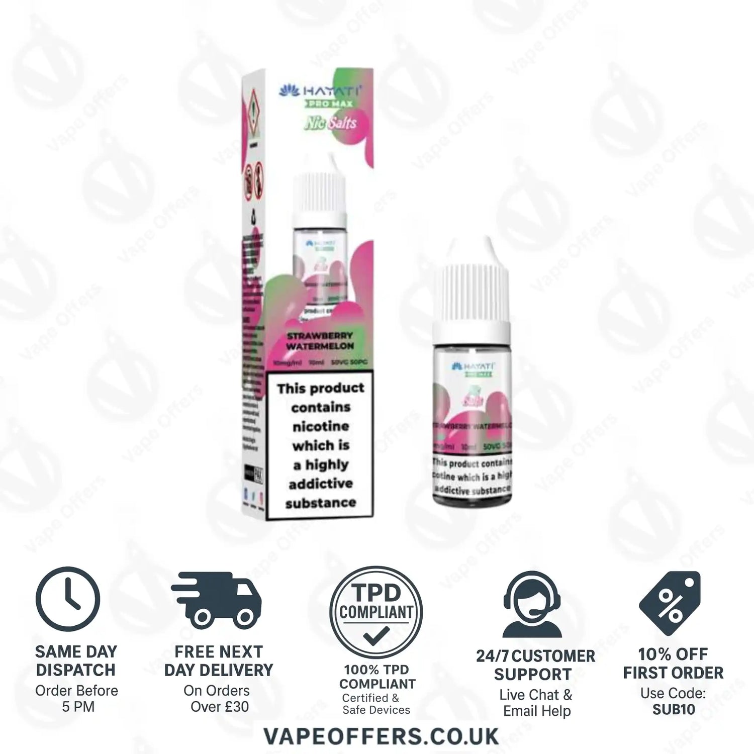 Introducing the Hayati Pro Max Nic Salt - Strawberry Watermelon, a vaping sensation that transcends the ordinary, designed for those who appreciate the finer nuances of flavor and a sophisticated vaping experience. Elevate your moments with this exquisite blend of succulent strawberries and juicy watermelon, perfectly encapsulated in a 10ml bottle of pure delight.