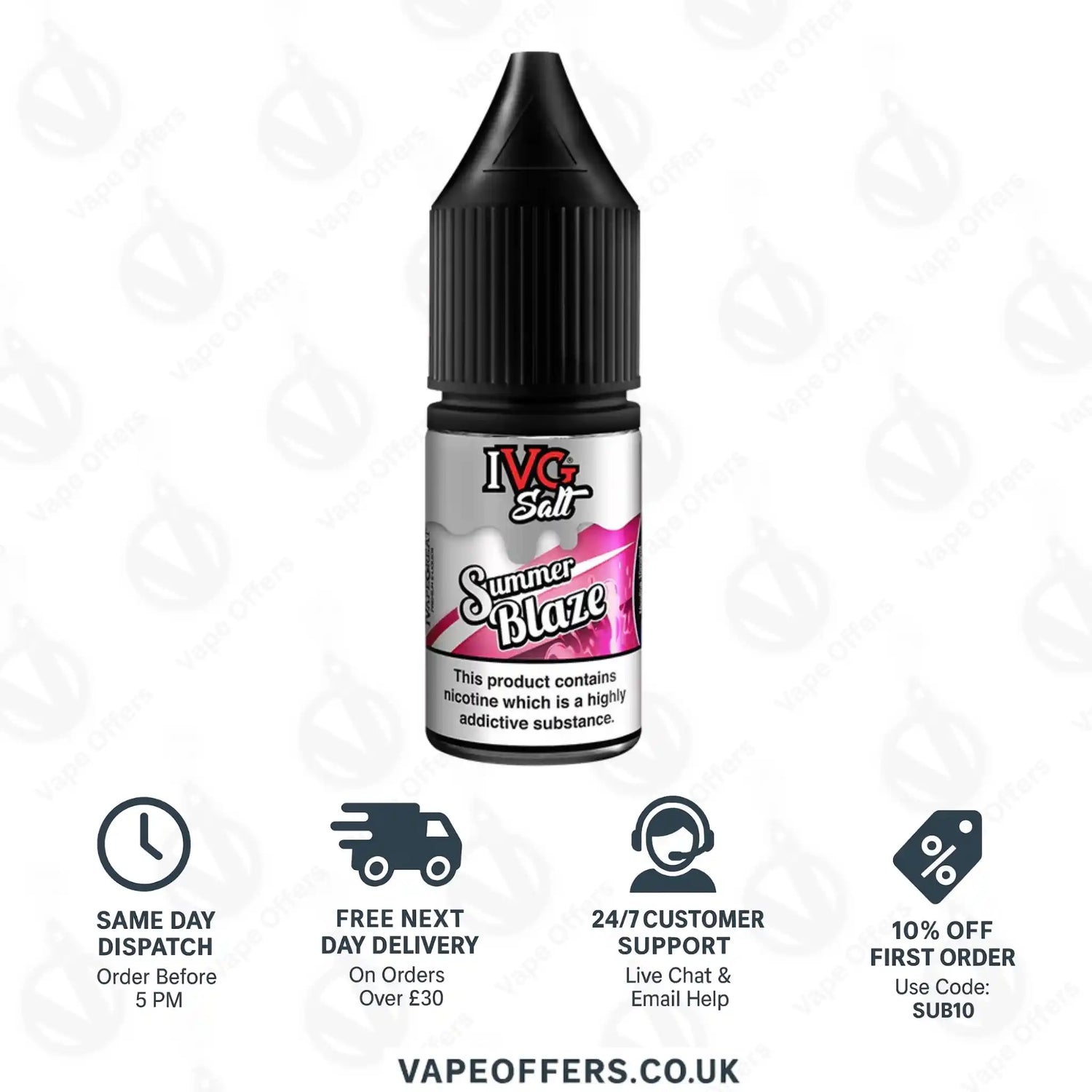 Ignite your taste buds with the sizzling flavors of IVG Summer Blaze Salts. This exceptional e-liquid combines the vibrant notes of mixed fruits with the crispness of lemonade, delivering a refreshing and invigorating vaping experience that embodies the essence of summer. With each inhale, you'll be greeted by a medley of juicy fruits, offering a burst of tropical sweetness and a symphony of flavors. The refreshing lemonade undertones add a tangy twist, creating a harmonious balance that lingers on your palate. Crafted with a nicotine salt formula, IVG Summer Blaze Salts ensure a smooth and satisfying throat hit, allowing you to fully immerse yourself in the refreshing and fruity fusion with every puff. Let the flavors of IVG Summer Blaze Salts transport you to a sun-kissed beach, where each vape is a sip of sunshine and a taste of the vibrant season. Get ready to embrace the sizzle of summer with IVG Summer Blaze Salts, and let your taste buds dance to the beat of fruity citrus and refreshing lemonade