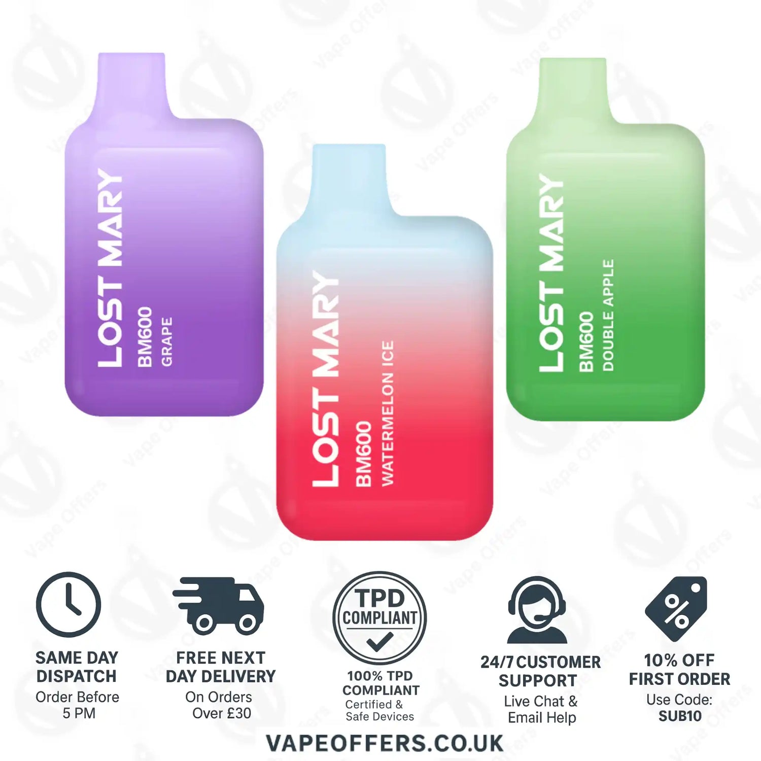 - Trusted Brand & Quality: Lost Mary is a brand backed by the makers of Elf Bar, one of the most trusted names in vaping. That means you can count on quality construction and performance. The BM600 Prefilled Pod Kit has built-in protections (short-circuit, low-voltage, etc.) and each pod is crafted for consistency. When you choose Lost Mary, you’re tapping into a huge fanbase in the UK who already love their – and this kit lets you enjoy the same experience in a smarter way. Reviews from UK vapers praise the kit’s flavour and ease of use, so you can feel confident choosing Lost Mary as your go-to vape kit.