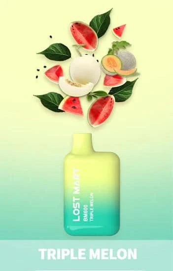 Lost Mary BM600 Puffs Triple Melon Flavor Vape UK highlights a pre-filled 2ml 20mg nicotine salt in a moreish blended natural product flavor. The Lost Mary Triple Melon BM600 is a special blended natural product flavor comprising sweet and smooth Honeydew, botanical Muskmelon, and new Watermelon.