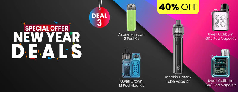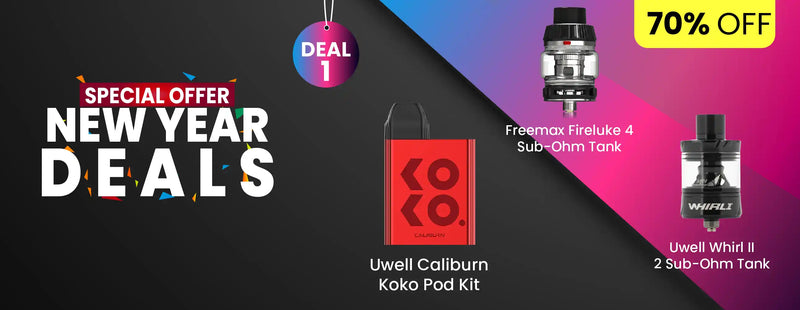 Huge 70% discount on bestselling MTL and Sub-Ohm favourites. Perfect for vapers looking for performance kits at the lowest New Year deal price.