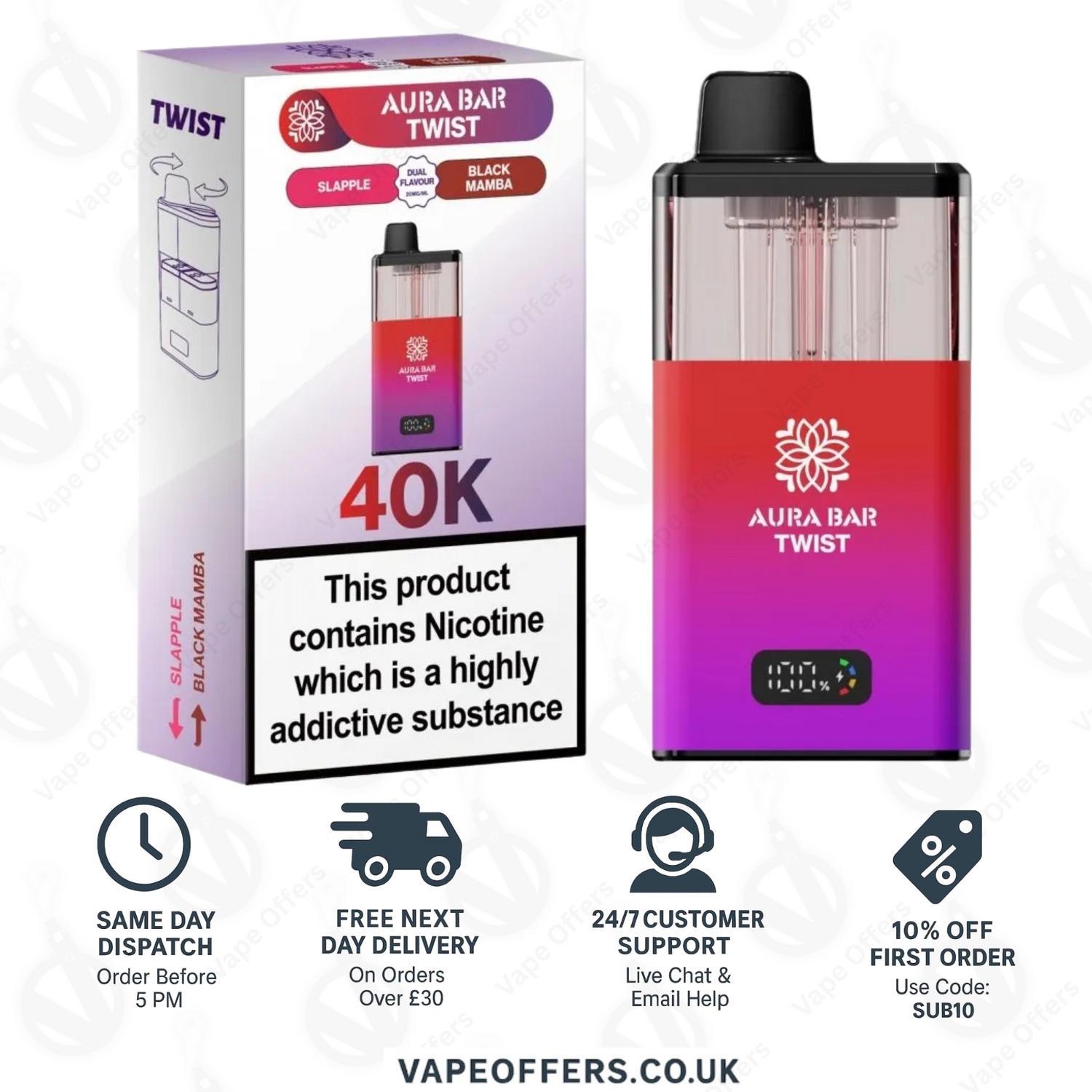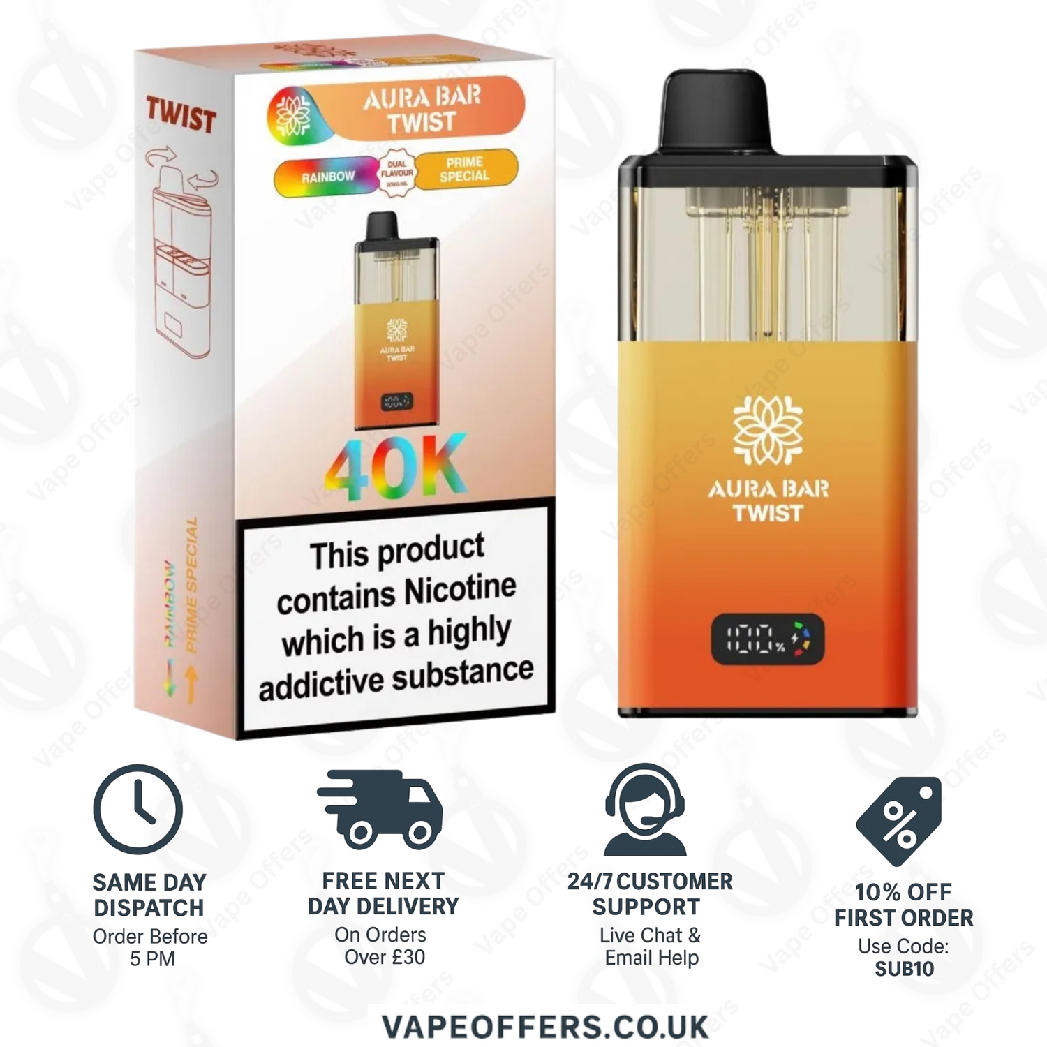Aura Bar Twist 40K Puffs Prefilled Vape Kit UK – Dual-Flavour, 40,000 Puffs, Rechargeable