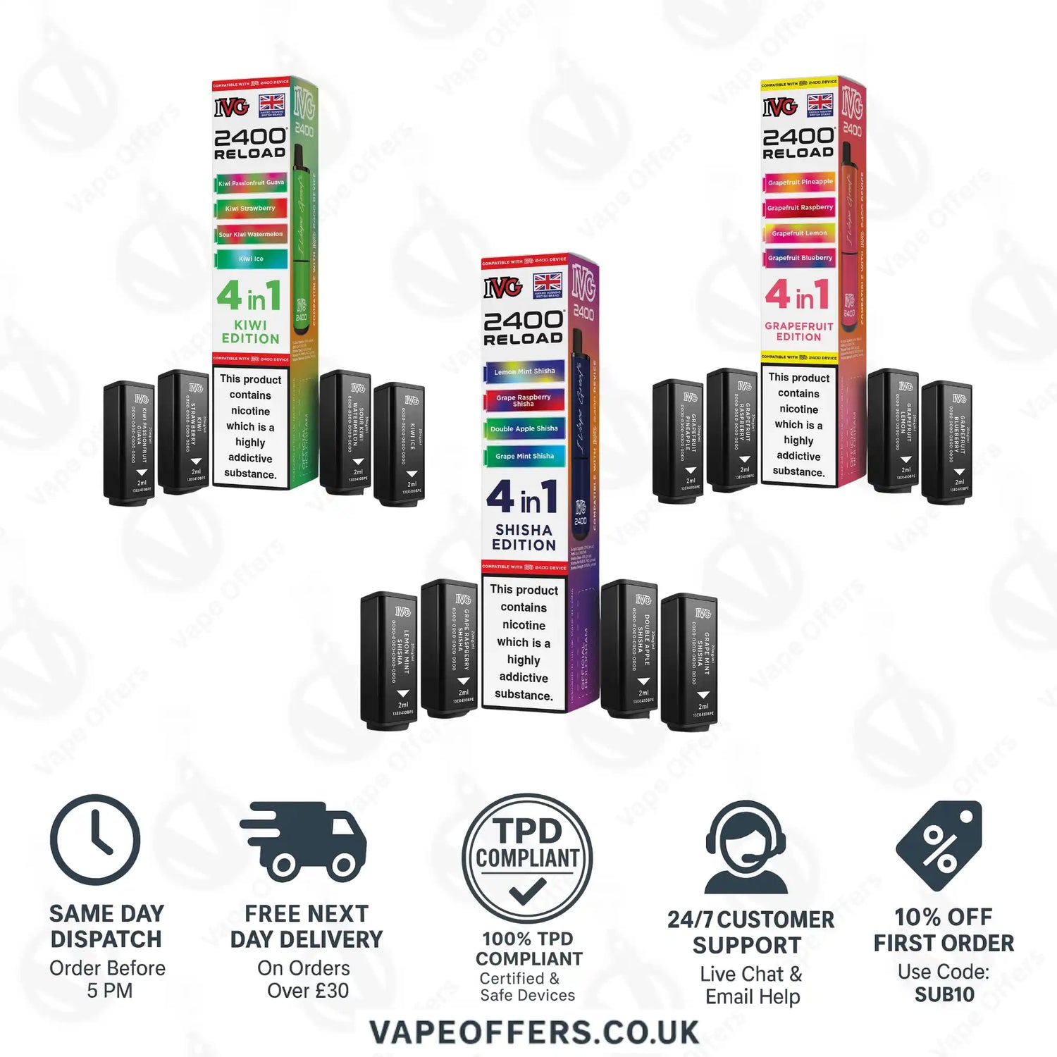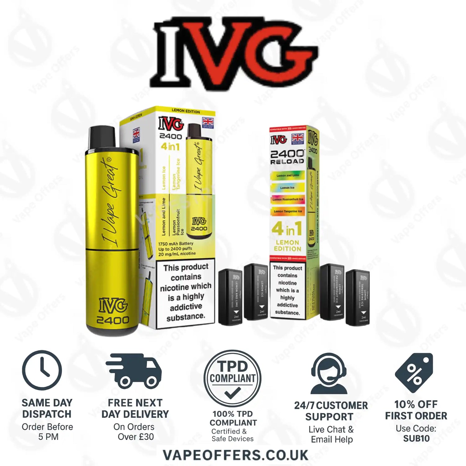 “Fast UK delivery from Vape Offers — genuine IVG pods.”
