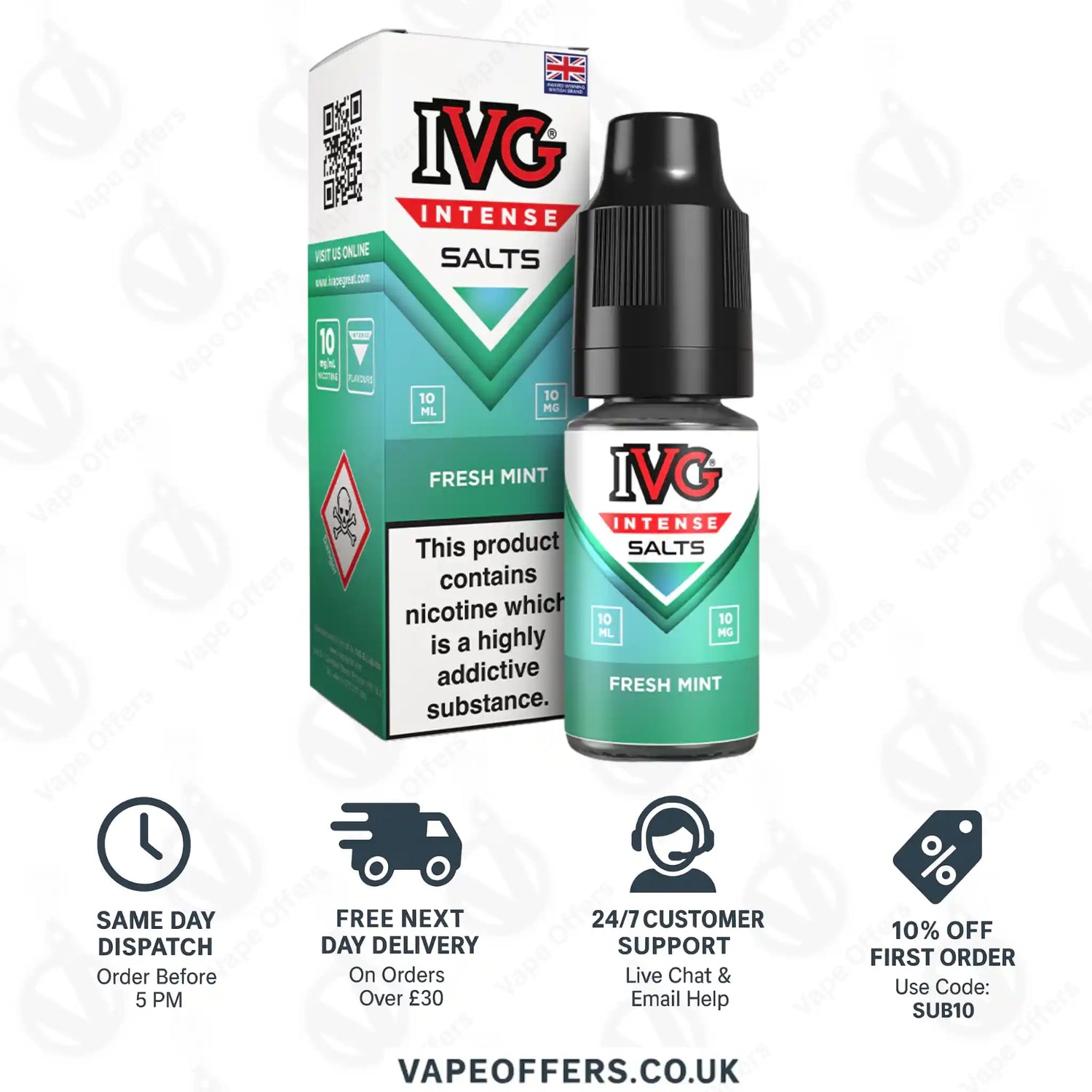 IVG Intense Salts Fresh Mint gives you a cool and refreshing mint taste, with a smooth and crisp puff every time.