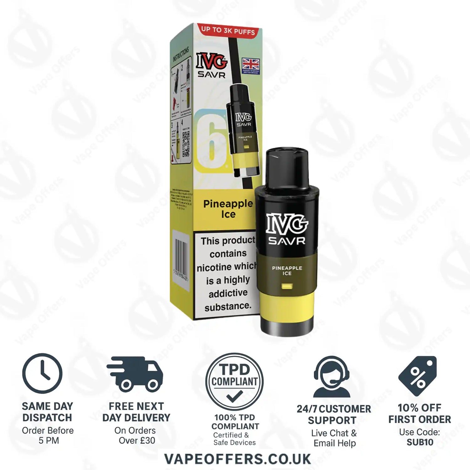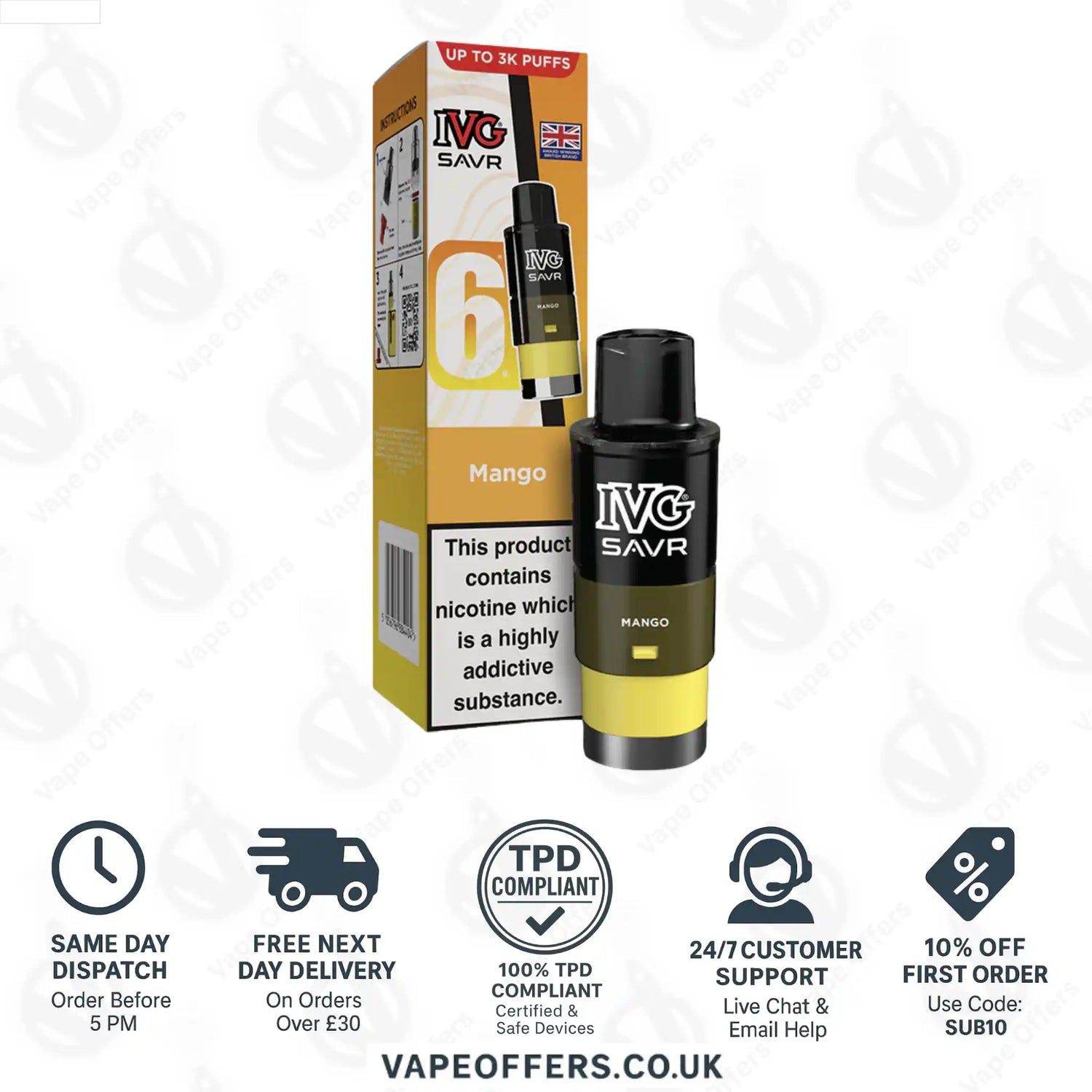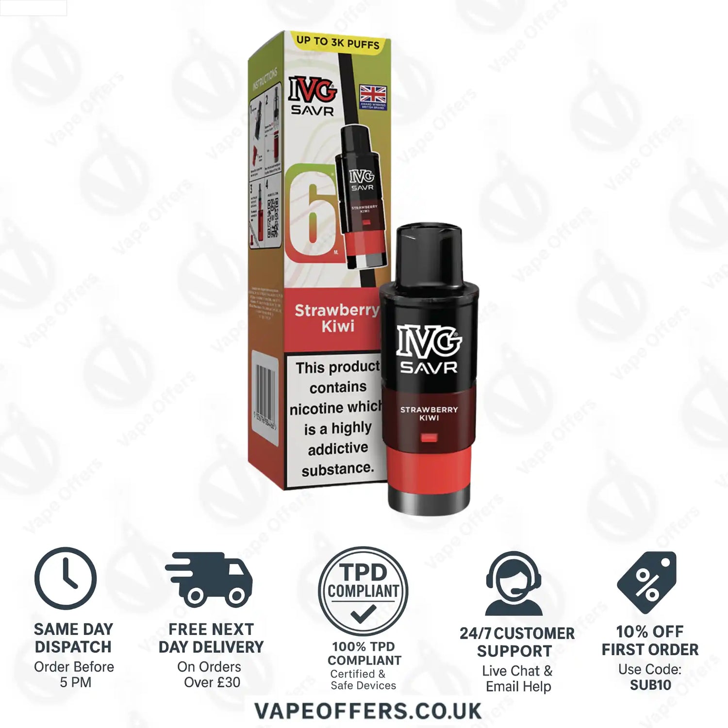 IVG Savr pods UK – 2 ml Prefilled Pod + 4 ml Refill, Up to 3,000 Puffs, Next-Day Delivery