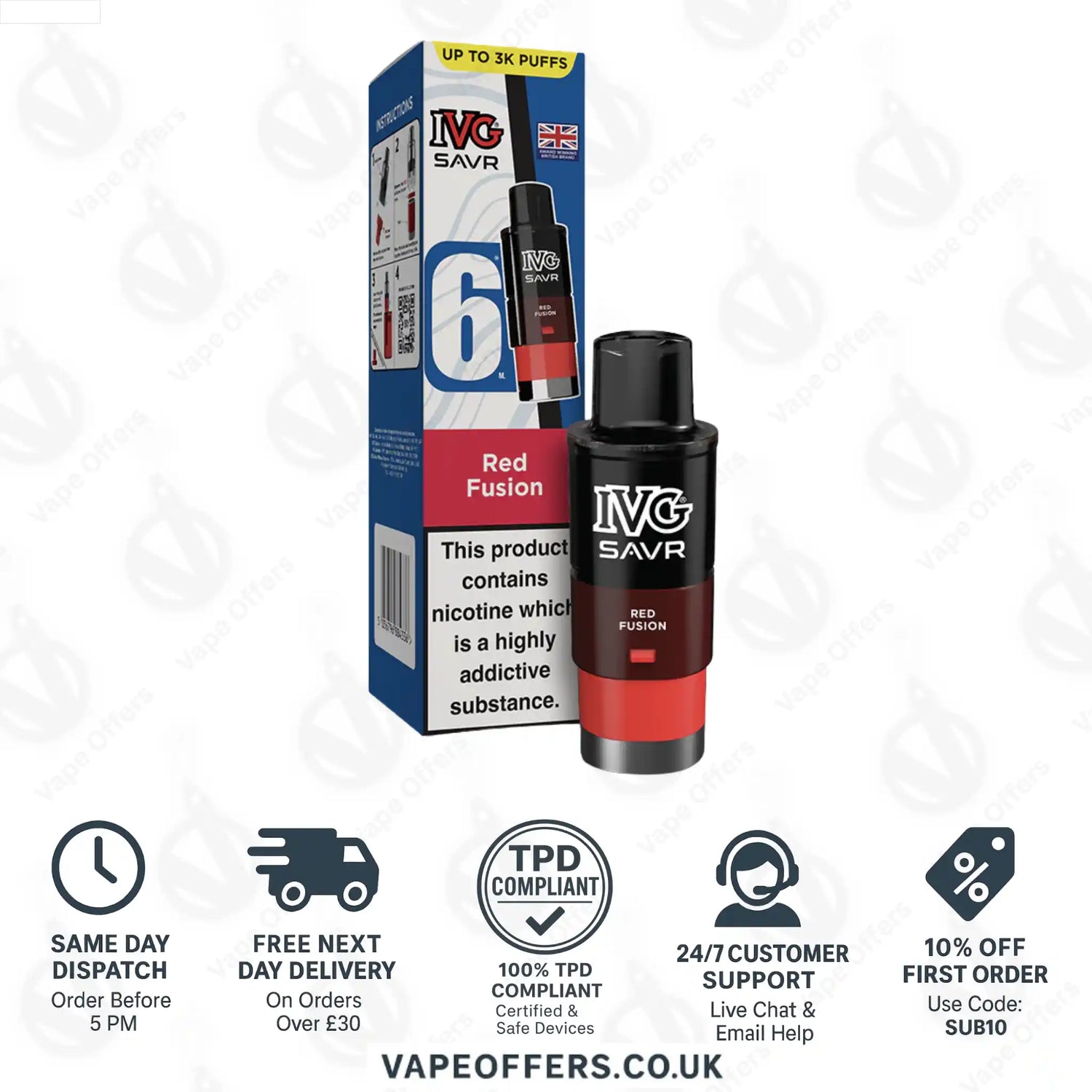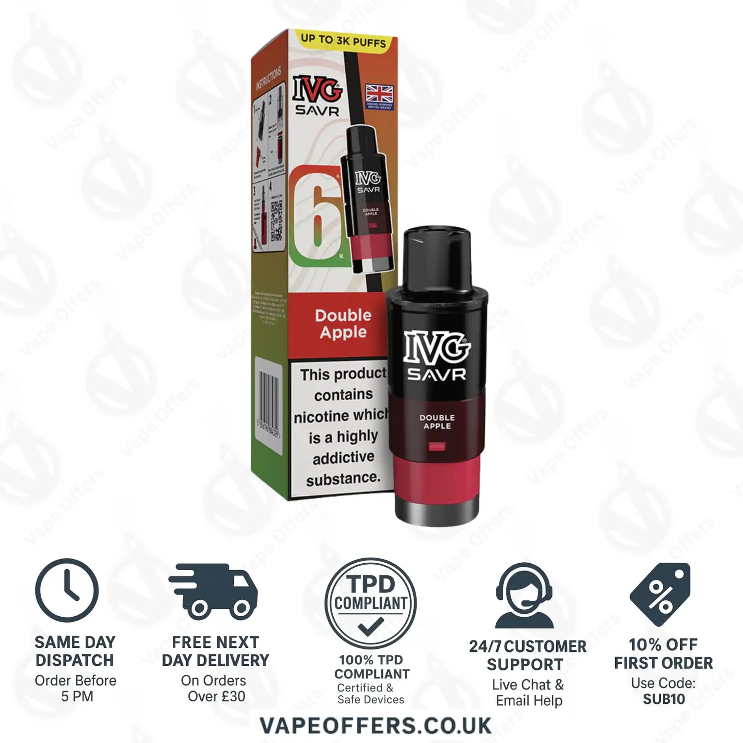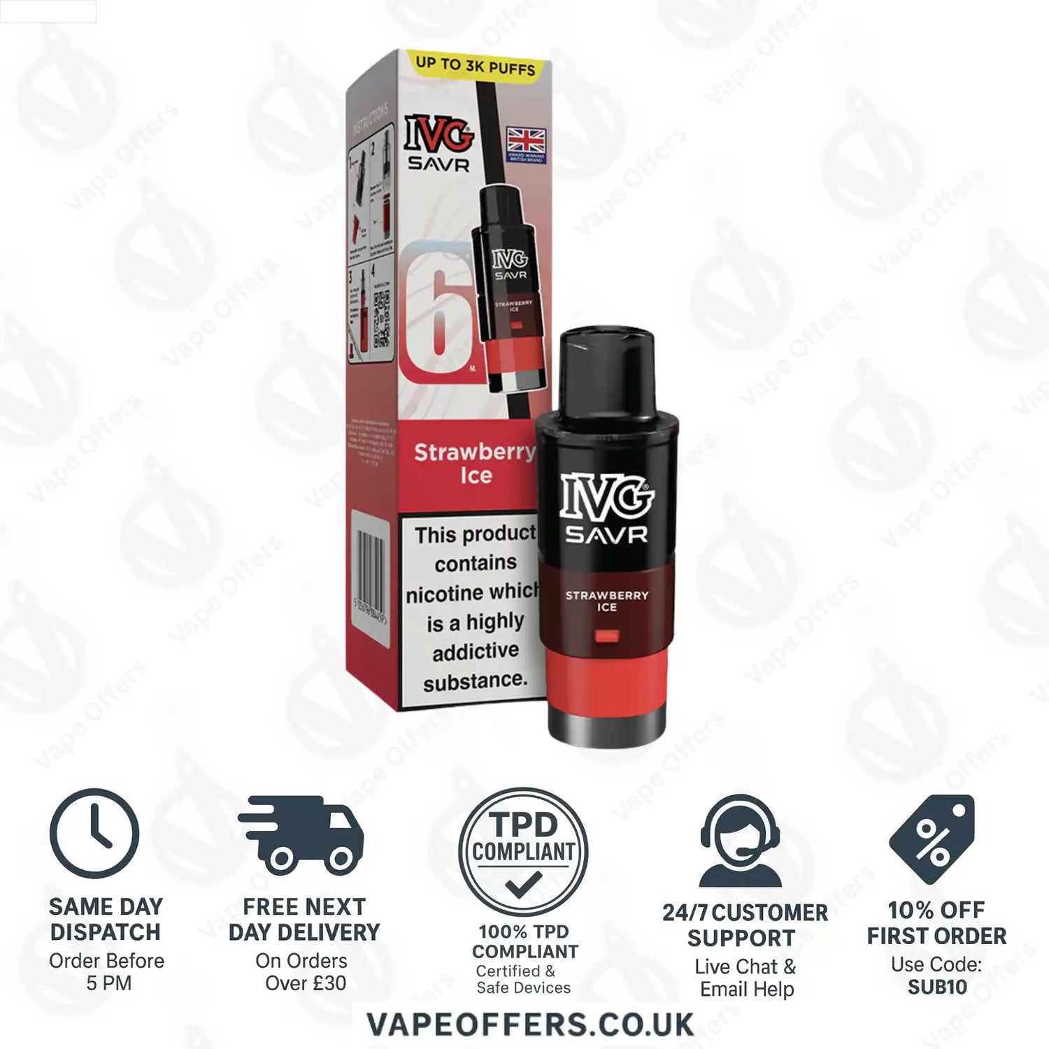 IVG Savr pods UK – 2 ml Prefilled Pod + 4 ml Refill, Up to 3,000 Puffs, Next-Day Delivery