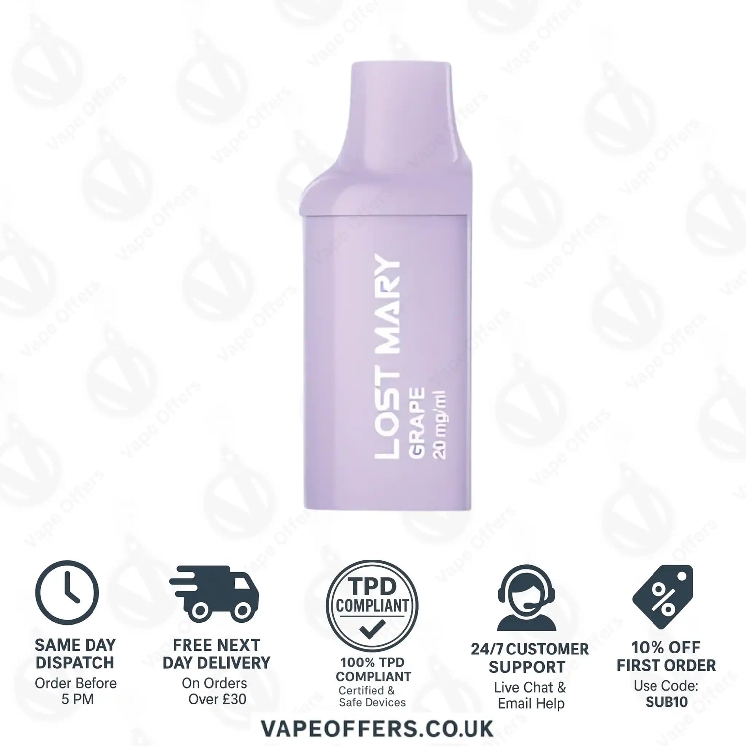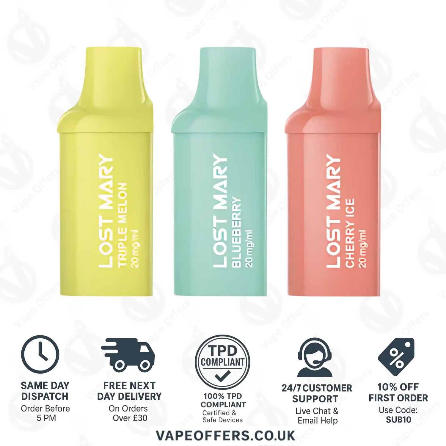 “Fast UK delivery. Genuine Lost Mary pods, 5 stars.”