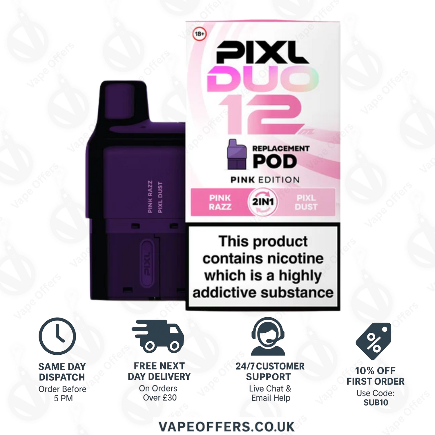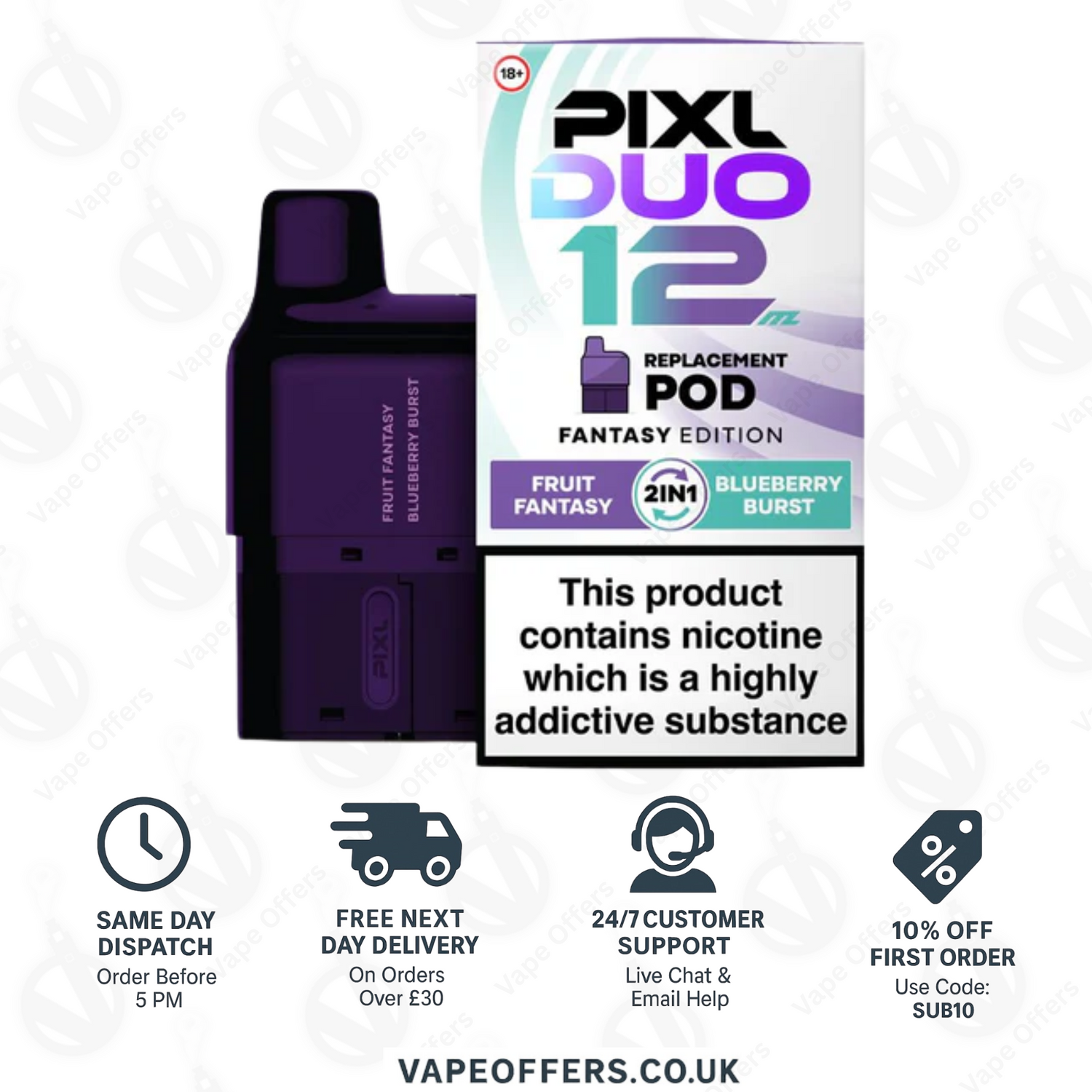 Pixl duo 12 pods UK – 2×1 ml Pods + 2×5 ml Containers • Mesh MTL • Up to 6,000 Puffs • Next-Day UK Delivery