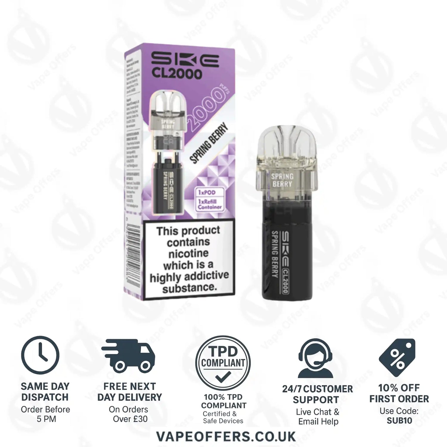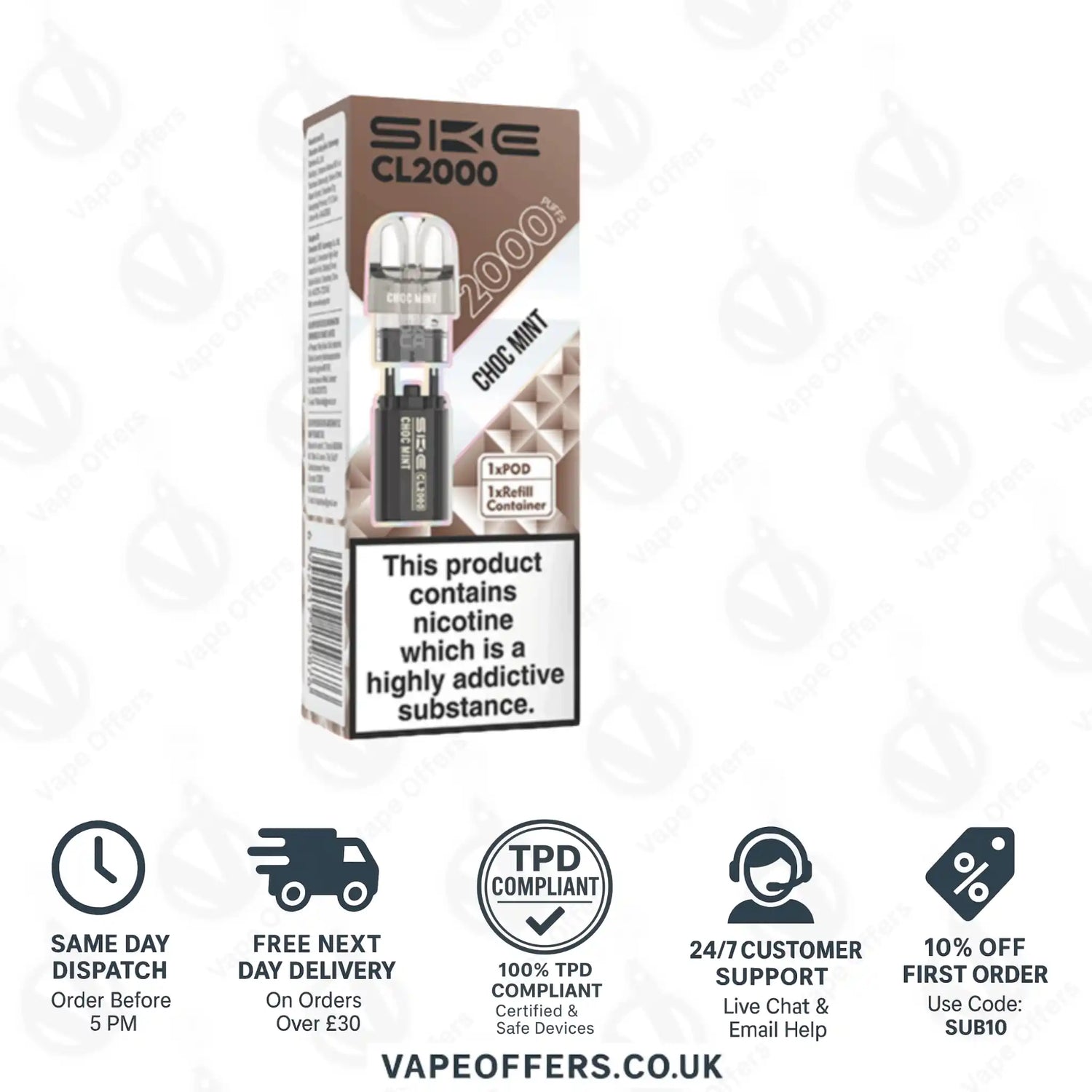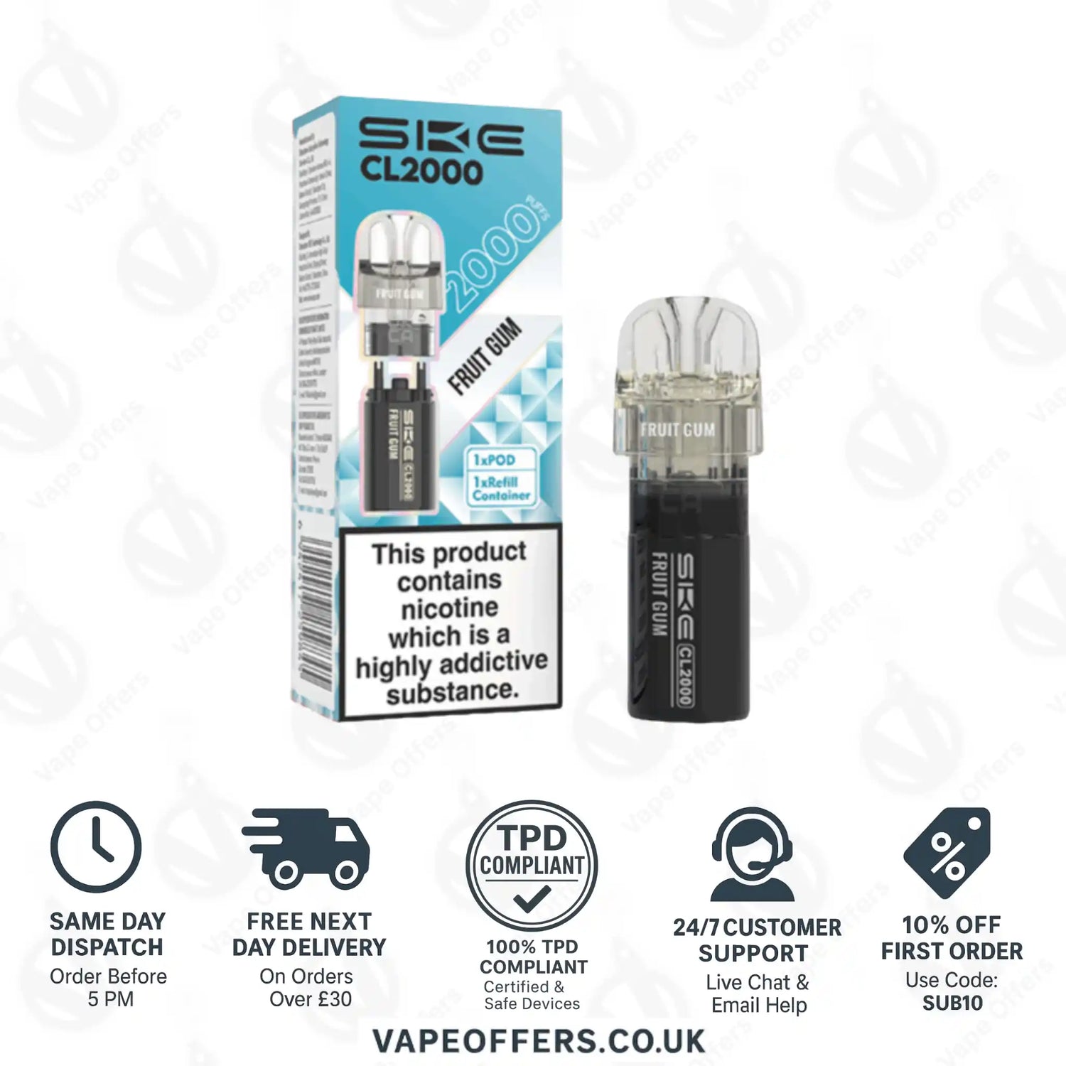 - 1 × 2ml SKE Crystal CL2000 pod (integrated mesh coil; sealed)