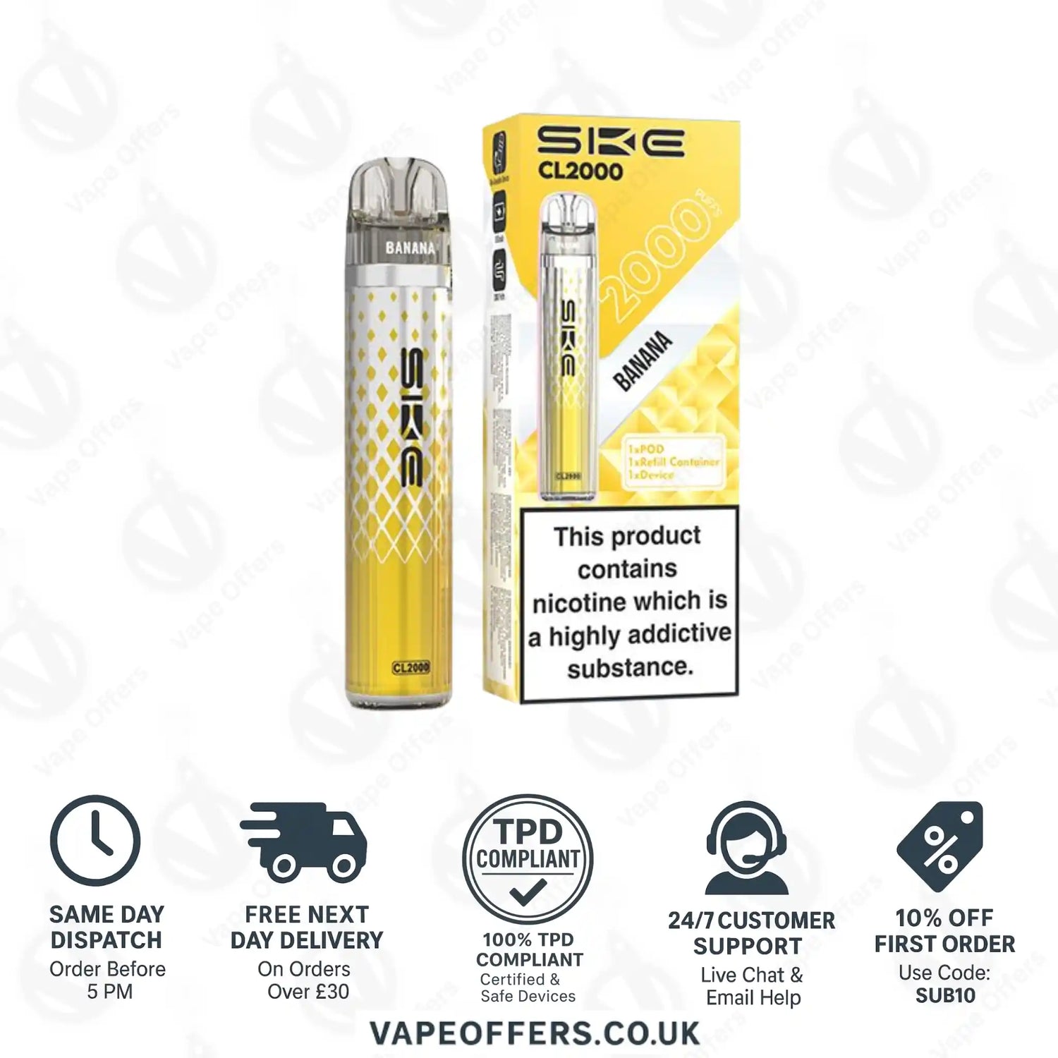 SKE Crystal CL2000 Prefilled Pod Kit - Banana is backordered and will ship as soon as it is back in stock.