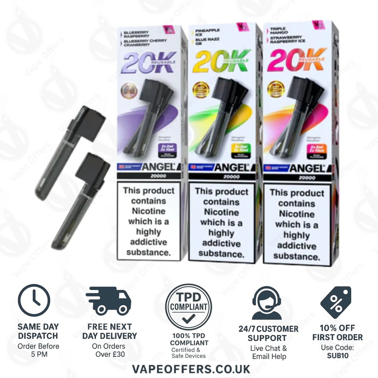 “Shipped next-day from Vape Offers — genuine Angel 20K pods.”