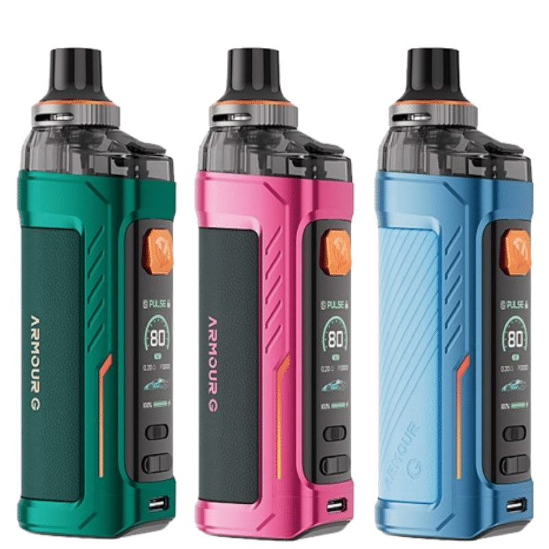 The Vaporesso Armour G doesn’t just perform well – it also looks great. It has a bold, modern design and comes in colours to match your style.