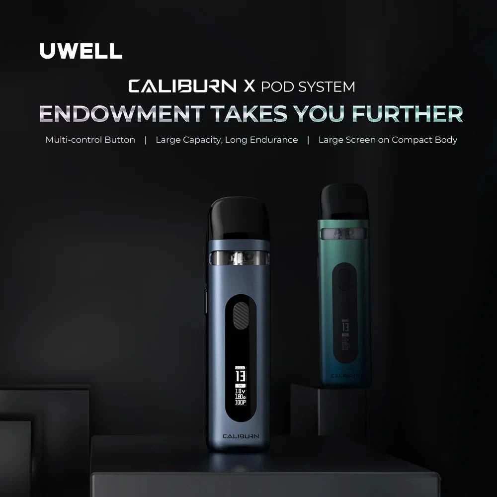 Uwell has newly enhanced the Caliburn series by bringing in the latest Caliburn X Pod Kit. This latest release from the house of Uwell is designed for vapers who require the practicality and features of advancement into a worthy device. The body of this pod system is compact but undeniably durable, which meets advanced features while being handy at the same time. It is also equipped with a large OLED screen that allows reading out substantial information related to battery life, wattage, coil resistance, and puff count for a completely notified vaping experience. Such a vape kit suits everybody, whether an average or advanced consumer.