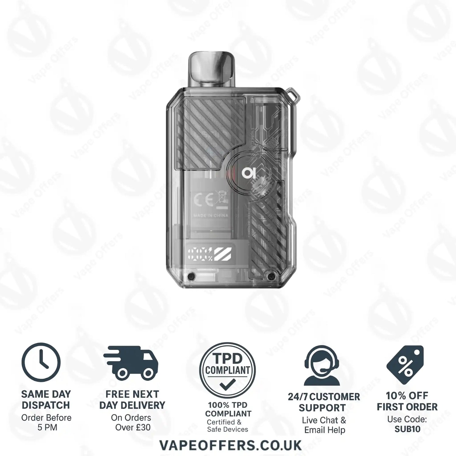 If you have any questions or concerns regarding shipping, please contact our customer support team at support@vapeoffers.co.uk.