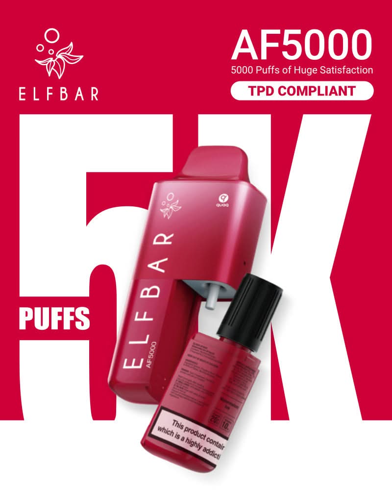 The ELFBAR AF5000 is available in 29 popular flavours, ranging from classic fruit blends to refreshing menthol and rich tobacco options.