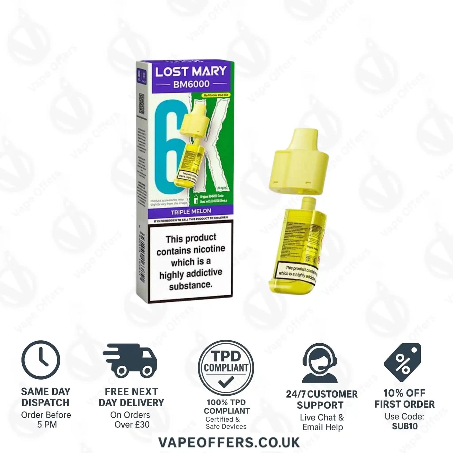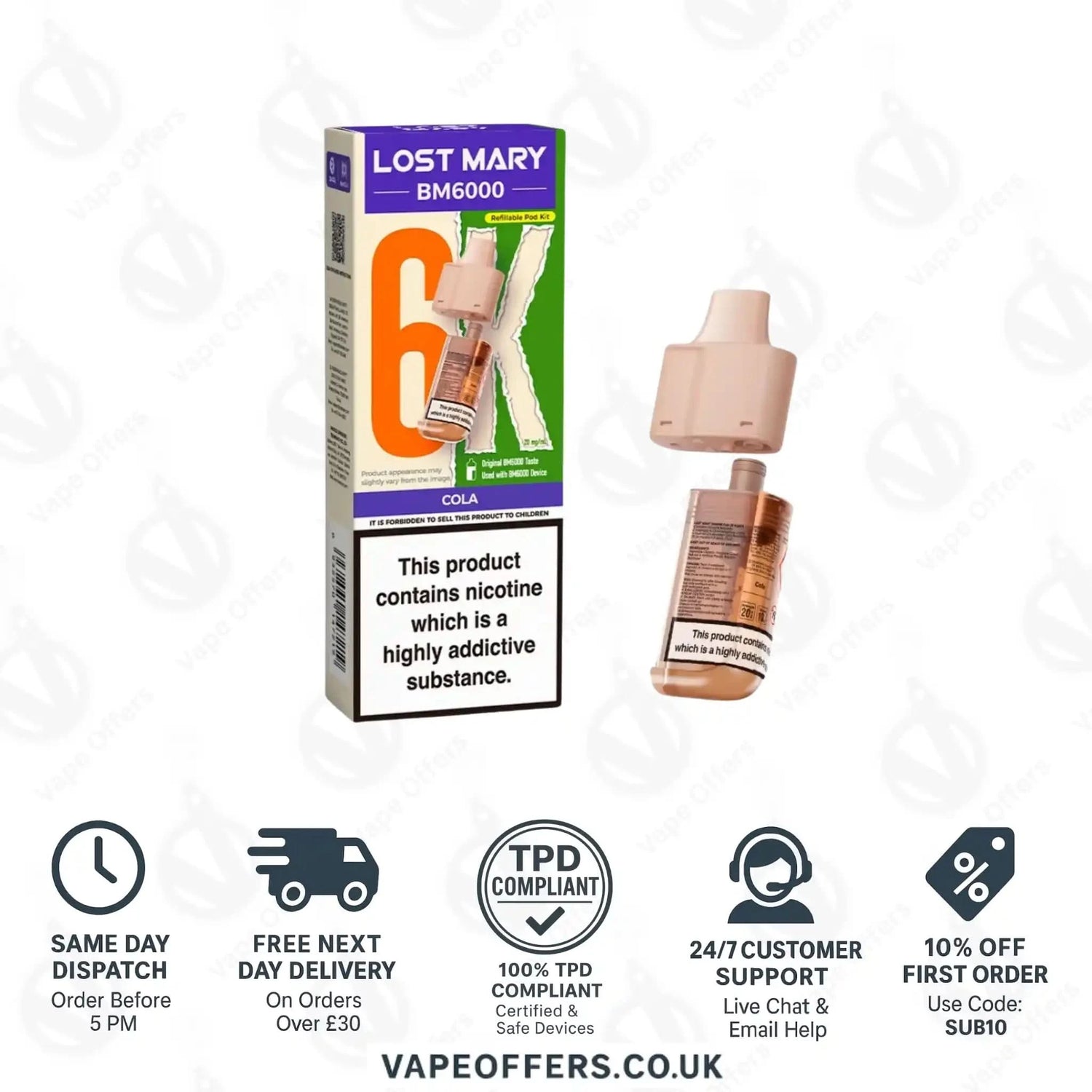 | Pod Compatibility | Lost Mary BM6000 Prefilled Pod Kit |